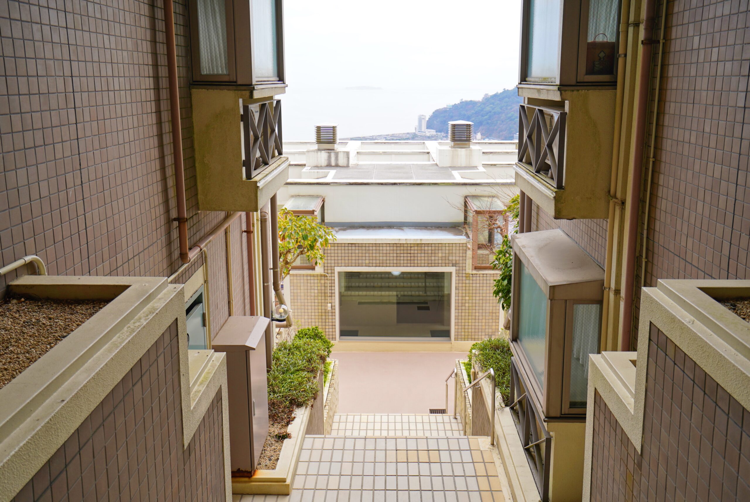 しかし、向かう途中に見える、建物と建物の間からの青い空と自然豊かな景色。急にぱっと視界が開けた時の気持ちよさ。
