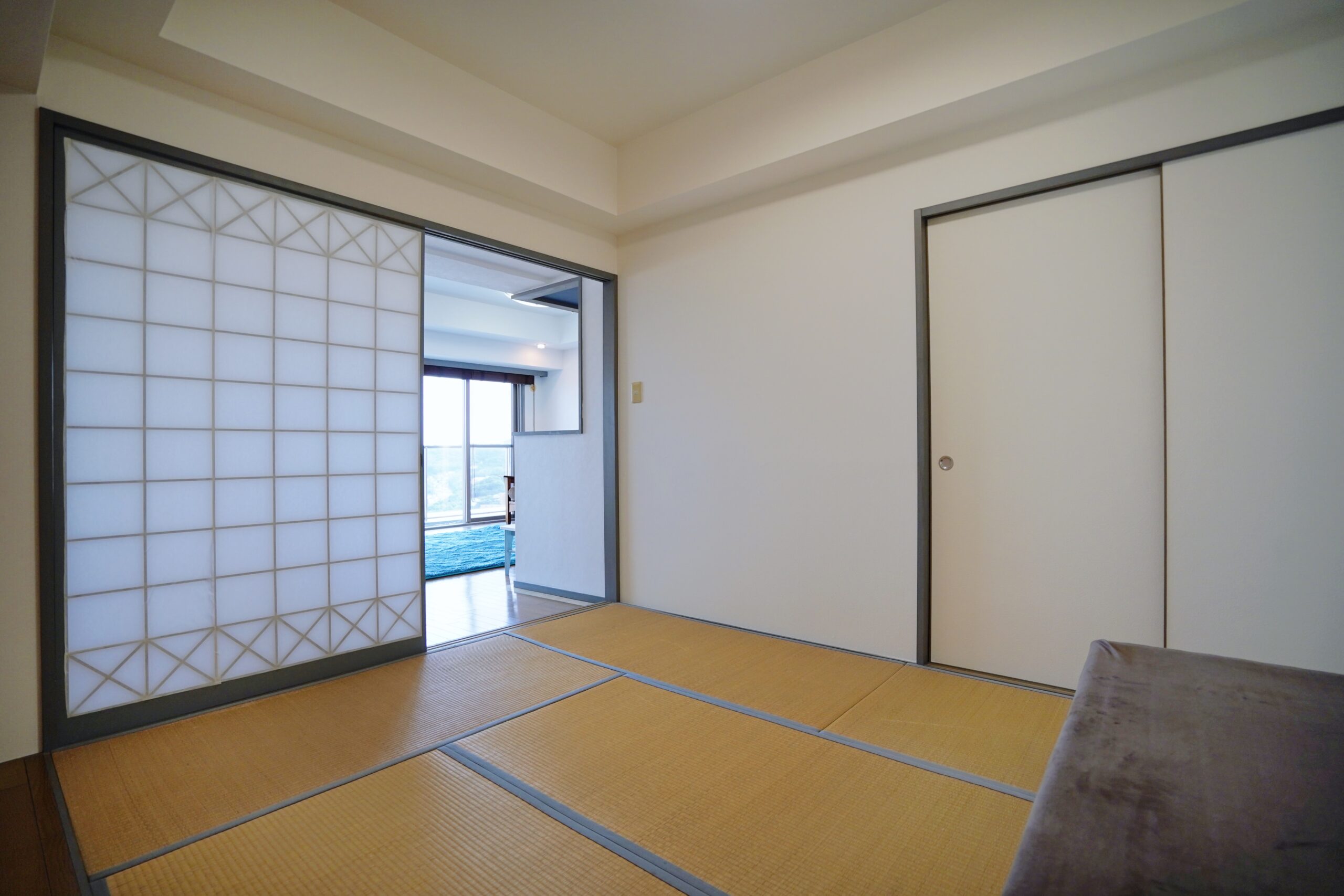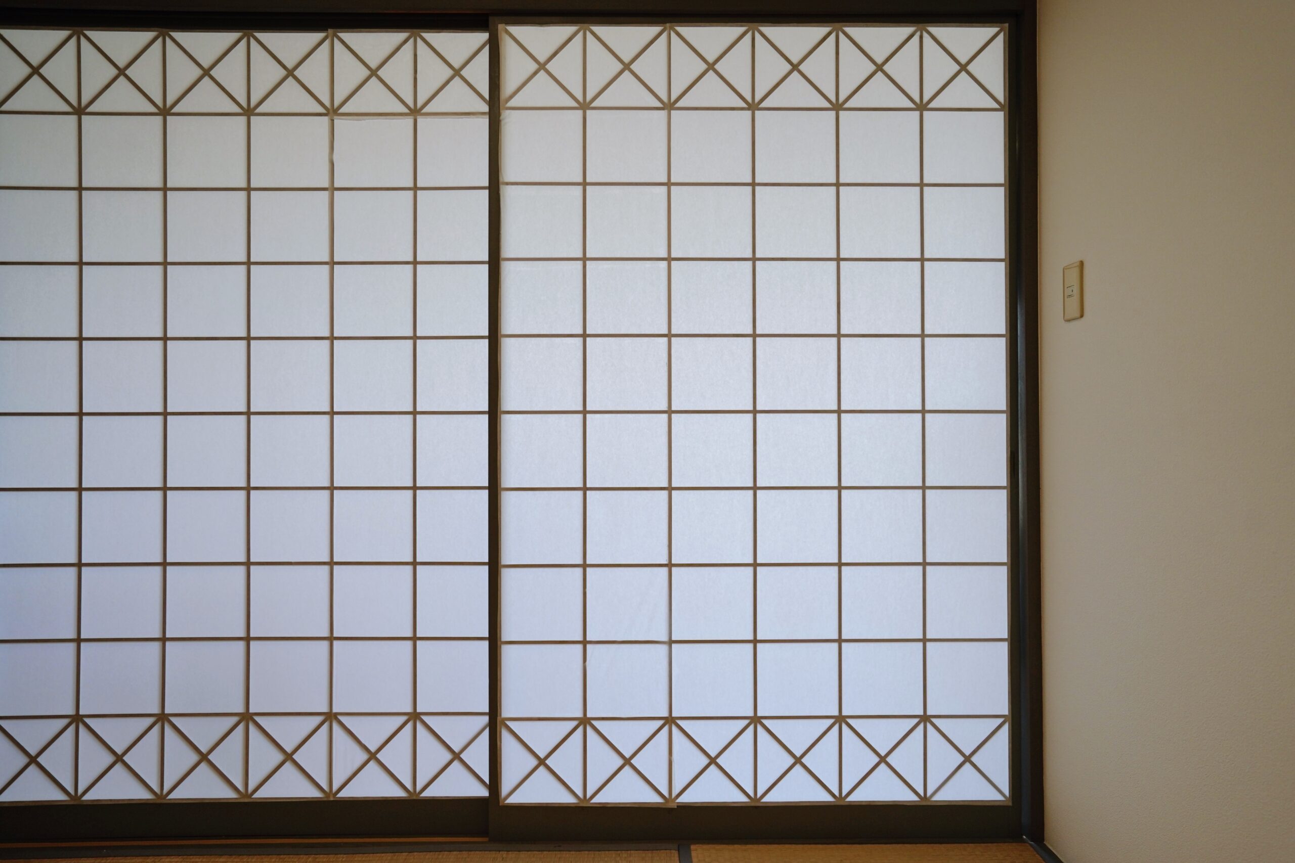 障子戸は、マンションの全体に共通する幾何学的なデザインと合わせてあり、そういった細かい意匠にもこだわりを感じます。