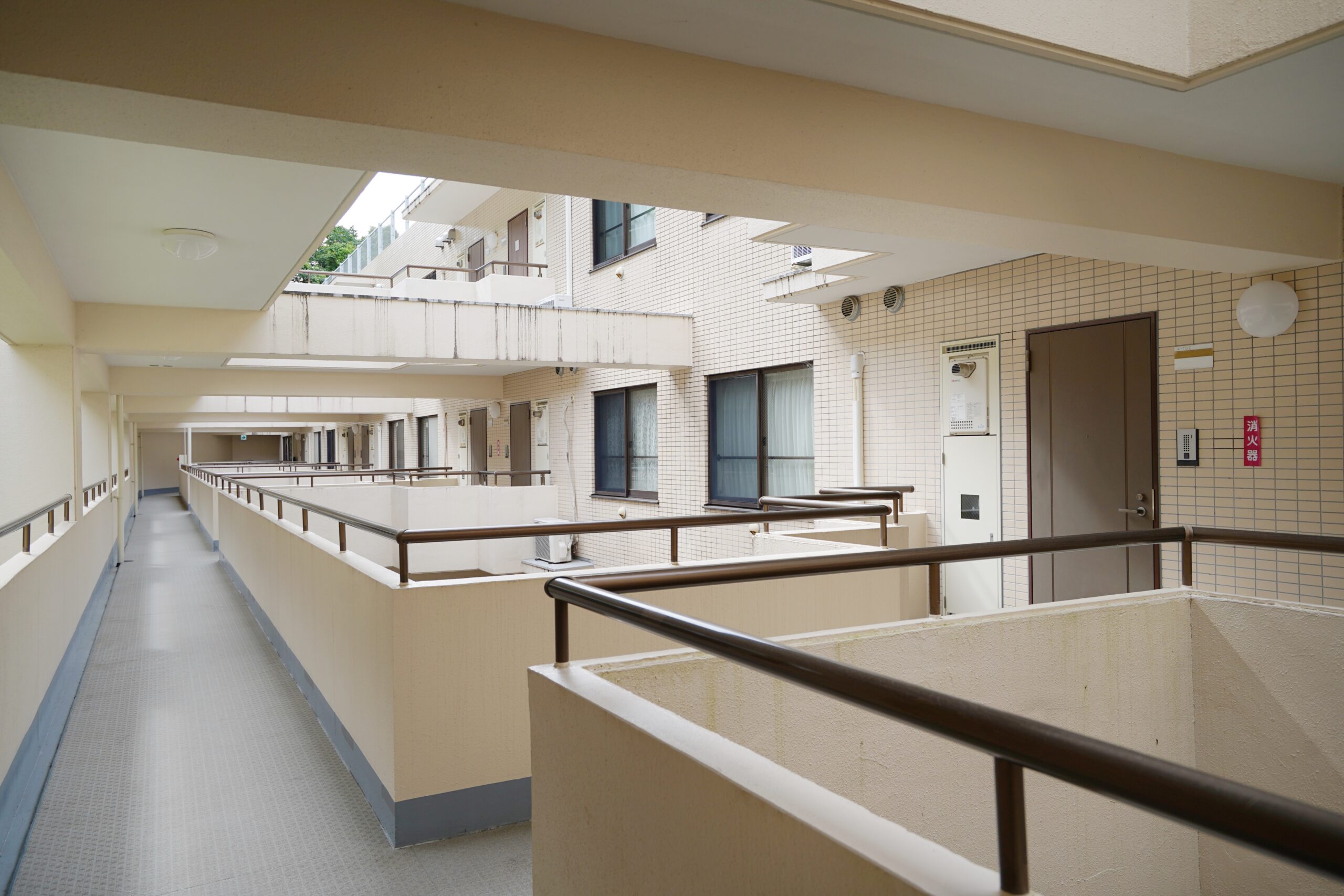 お部屋まではエレベーターで、7階へ。爽やかな風が吹き抜ける開放的な共用廊下を進みます。