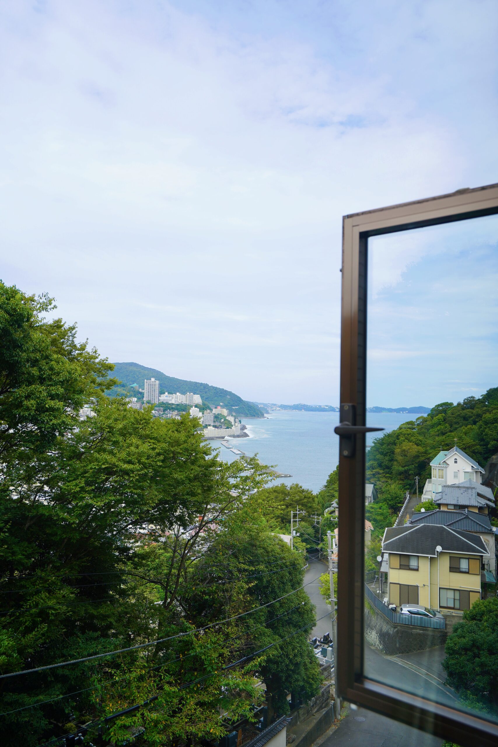窓の向こうには、熱海の街と海。ここから花火も見られるそう…!