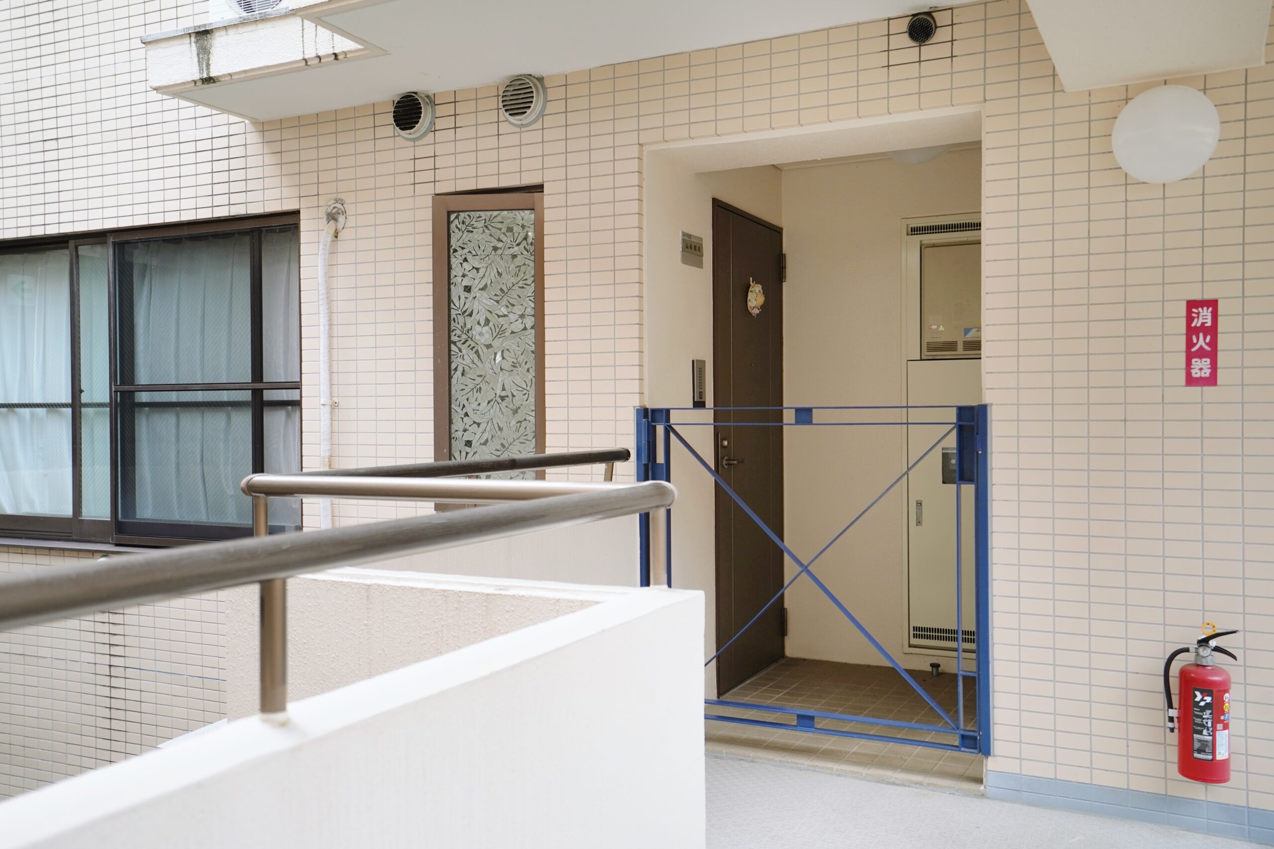 お部屋まではエレベーターで、7階へ。爽やかな風が吹き抜ける開放的な共用廊下を進みます。