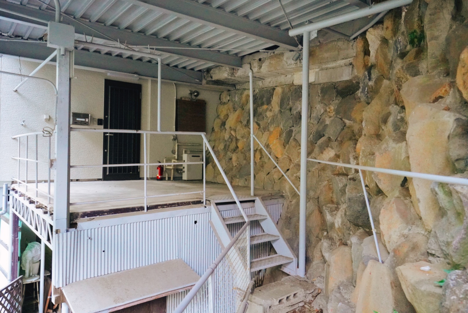 石垣に囲まれた玄関ポーチはまるで、洞窟の中の秘密基地への入り口…!そんな風に見えませんか?