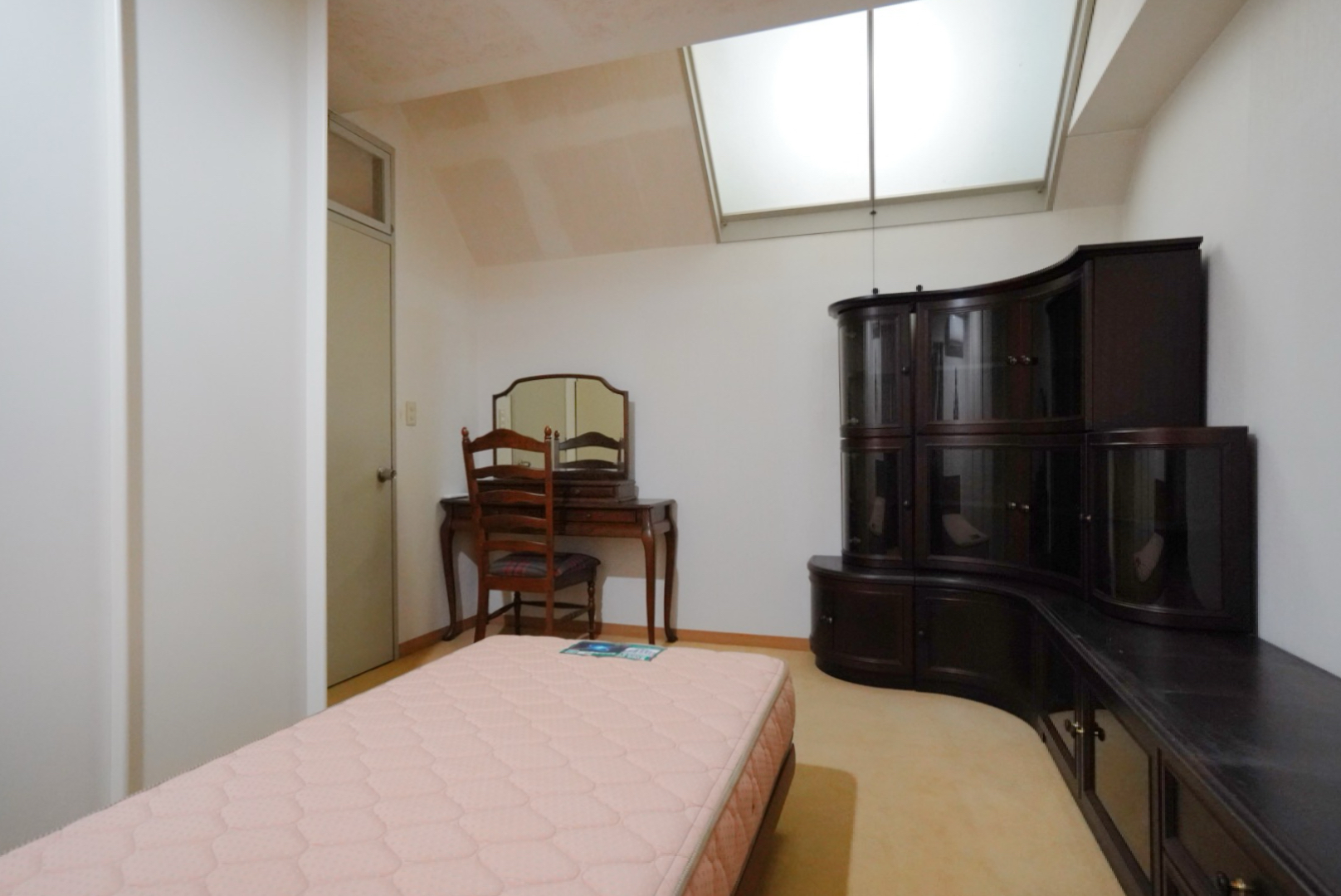 洋室は8.6帖。写真には壁に沿うように置かれた収納やドレッサー、ベッドがありますが、寝室として振り切って空間づくりをすれば、ダブルベッドも置けます。