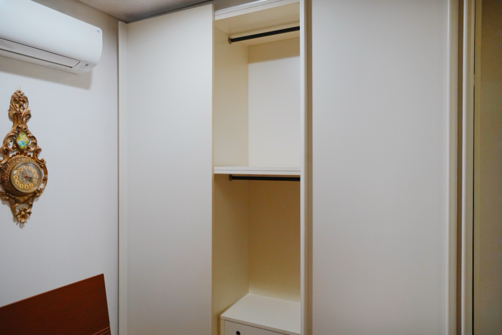 ひとつはハンガーポールがついているので、コートやシャツなどハンガーにかけたい衣類はこちらへ。