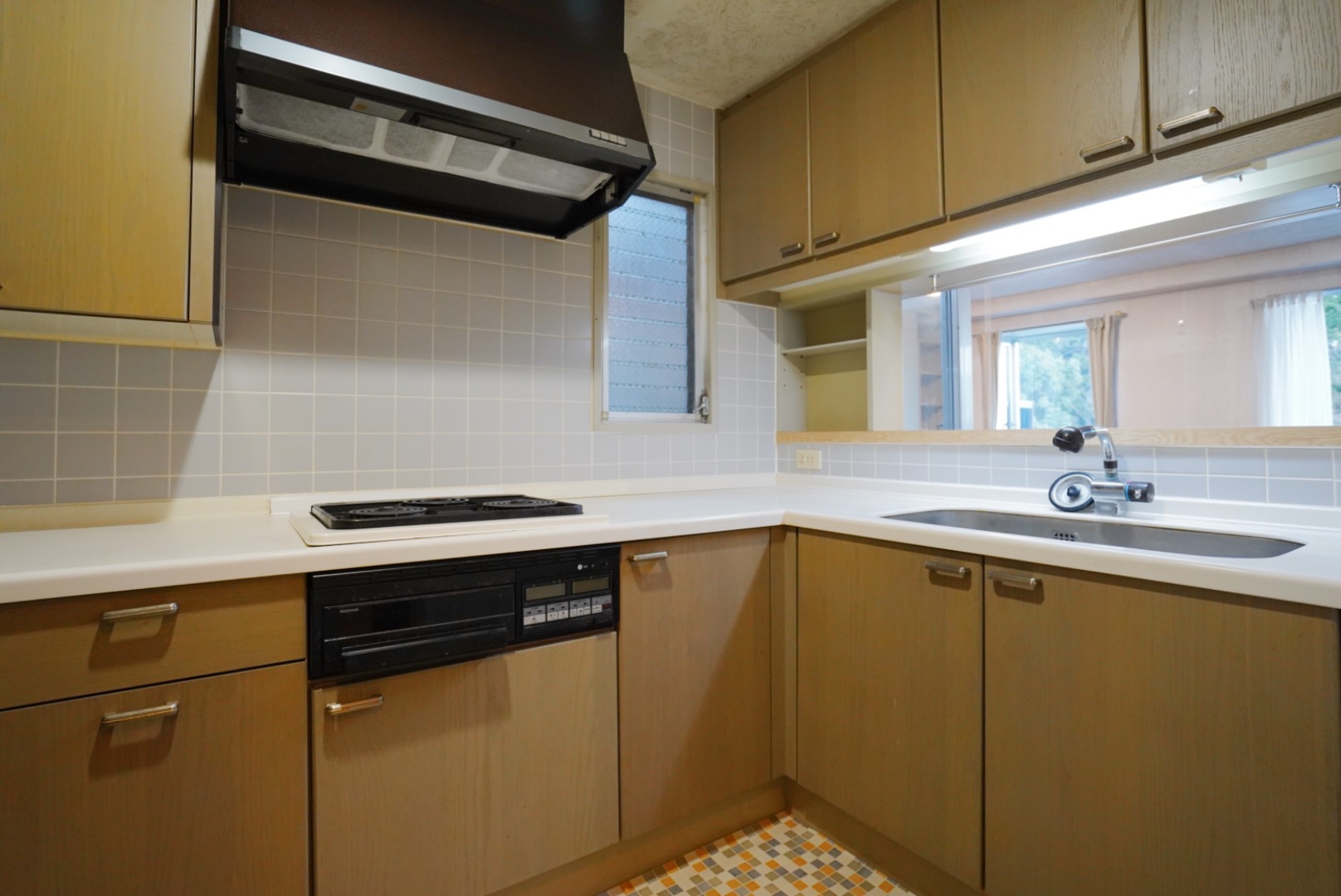 リビング側からキッチンを見ると、シンクの前にも収納が。よく使うお皿やカップなどはこの辺りにしまうと良さそうです。