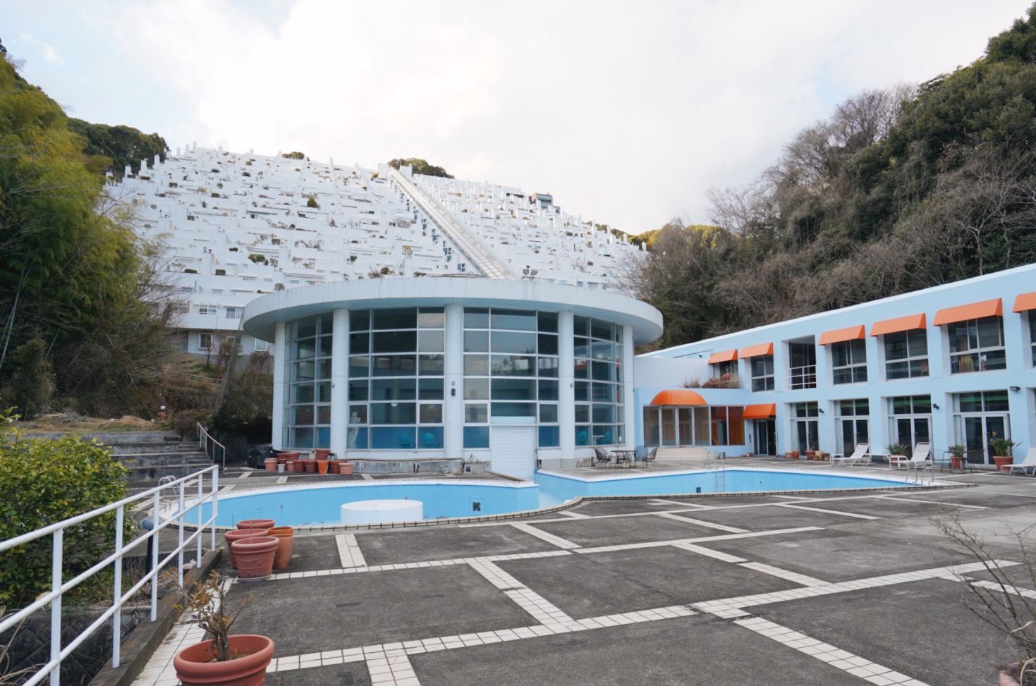 パサニアの全貌を眺めることができるのがプールのあるフロア。引きで見てもやはり圧巻です……!