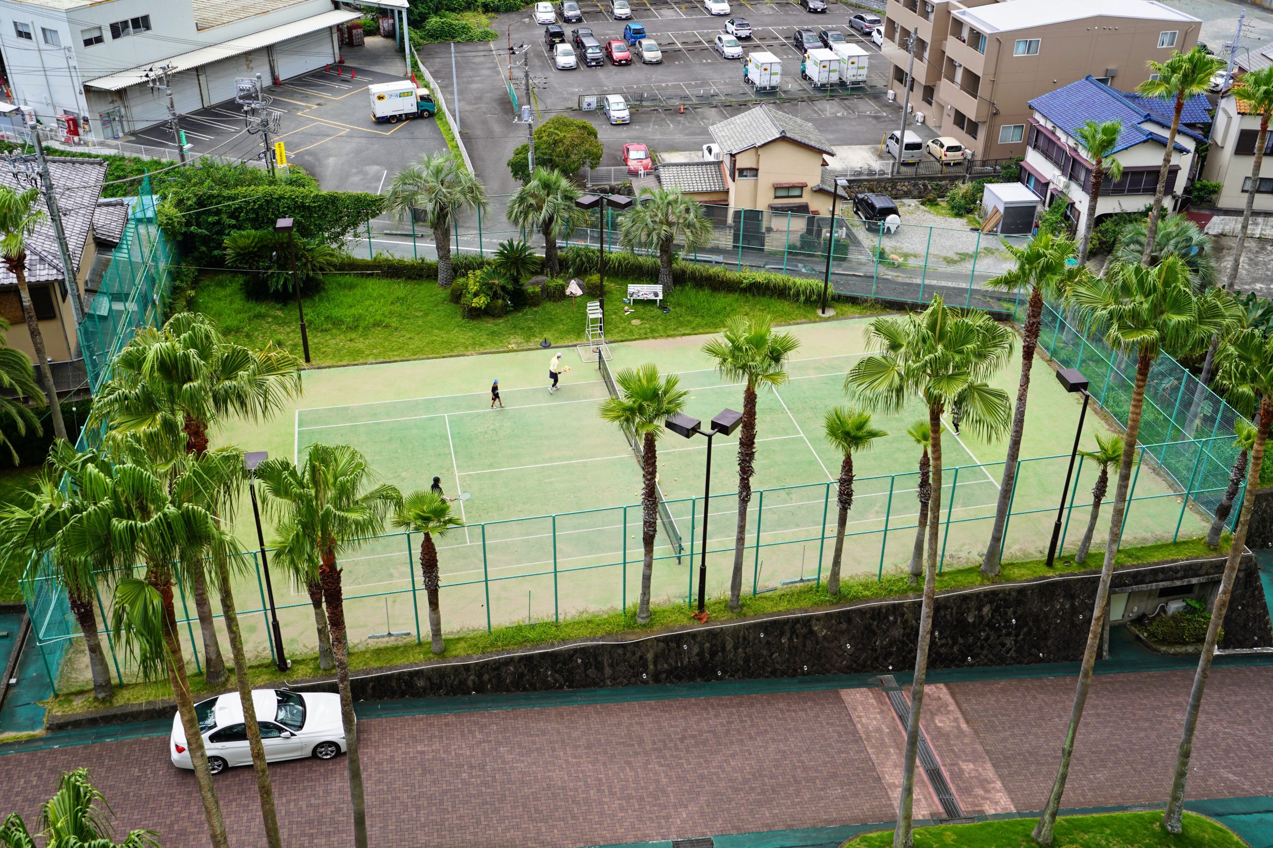 こちらのマンションには魅力的な施設がいくつもあり、海を一望できる爽やかなトレーニングルームにリラクゼーションルーム。さらに25mの屋内プールとシティポップのジャケットのような雰囲気の屋外プール、テニスコートにスカッシュコートまで。