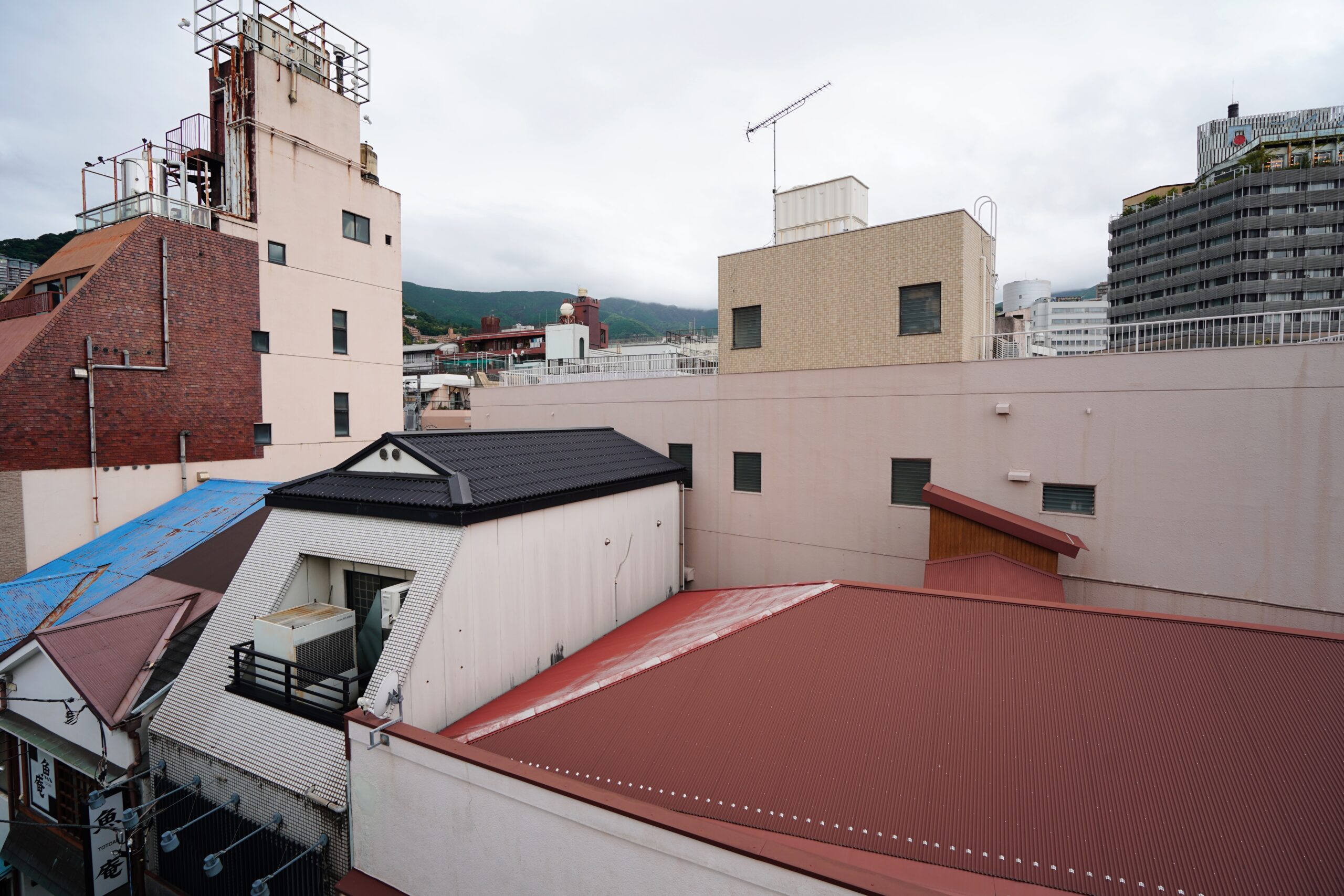 「熱海焙煎所カモメ珈琲豆店」「干物ダイニング yoshi‐魚‐tei」など、カフェやレストラン、お酒を楽しめるお店も多い糸川沿いの、こちらのビル。