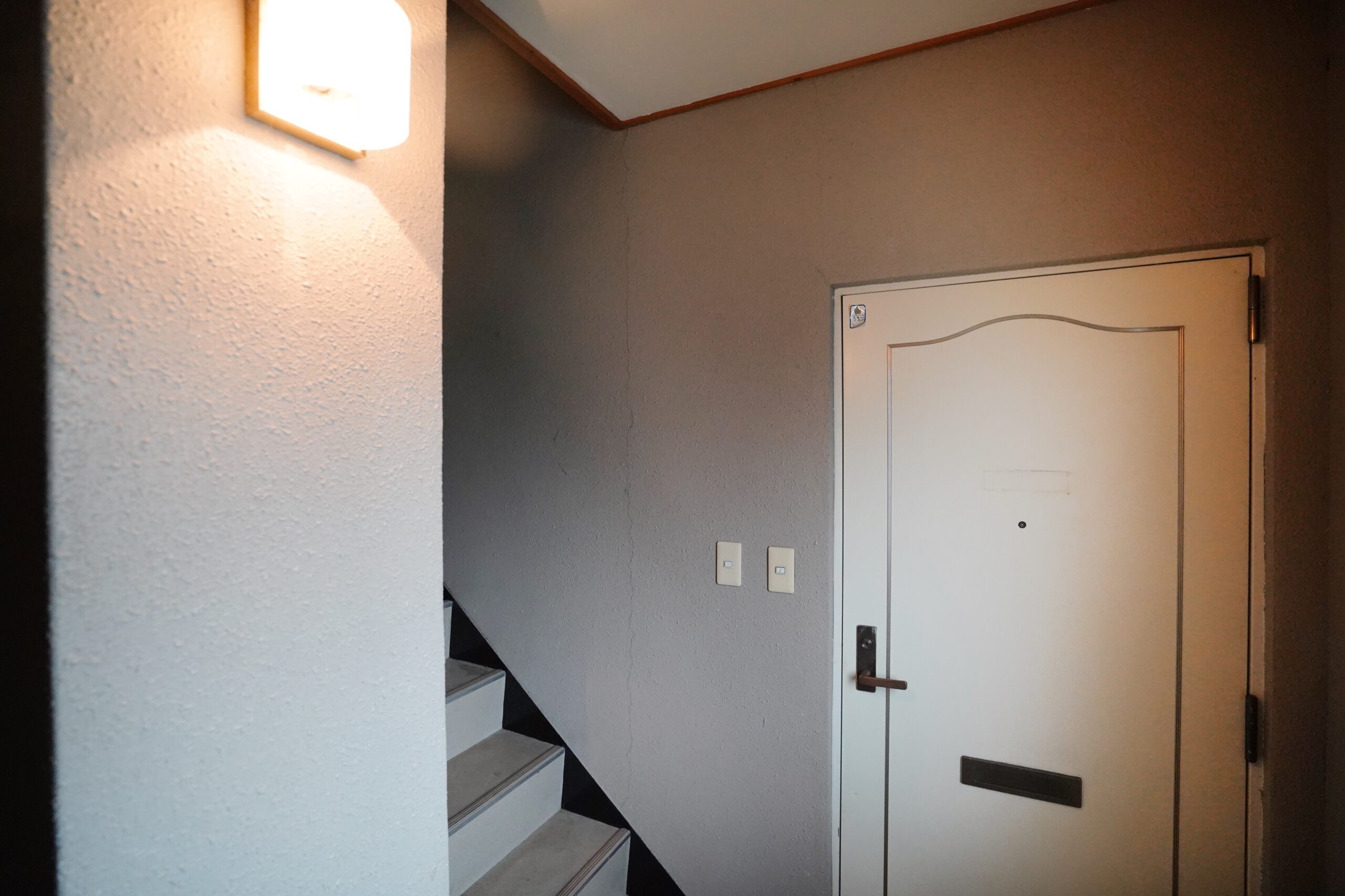 今回ご紹介するのは、通りに面した階段を上がって、4階のお部屋。