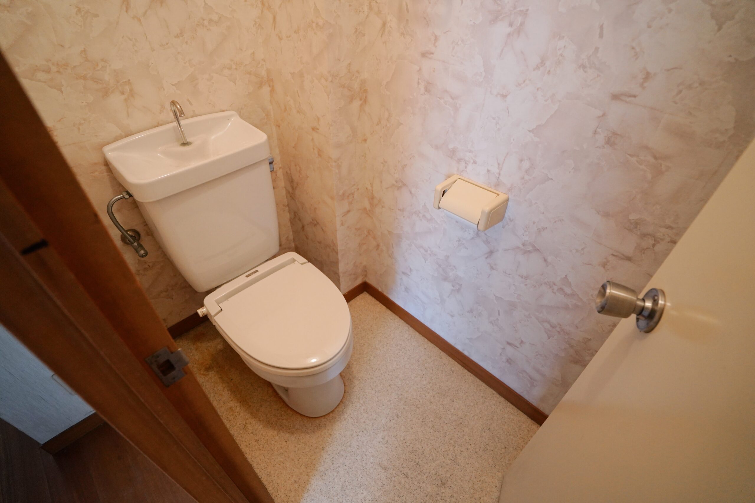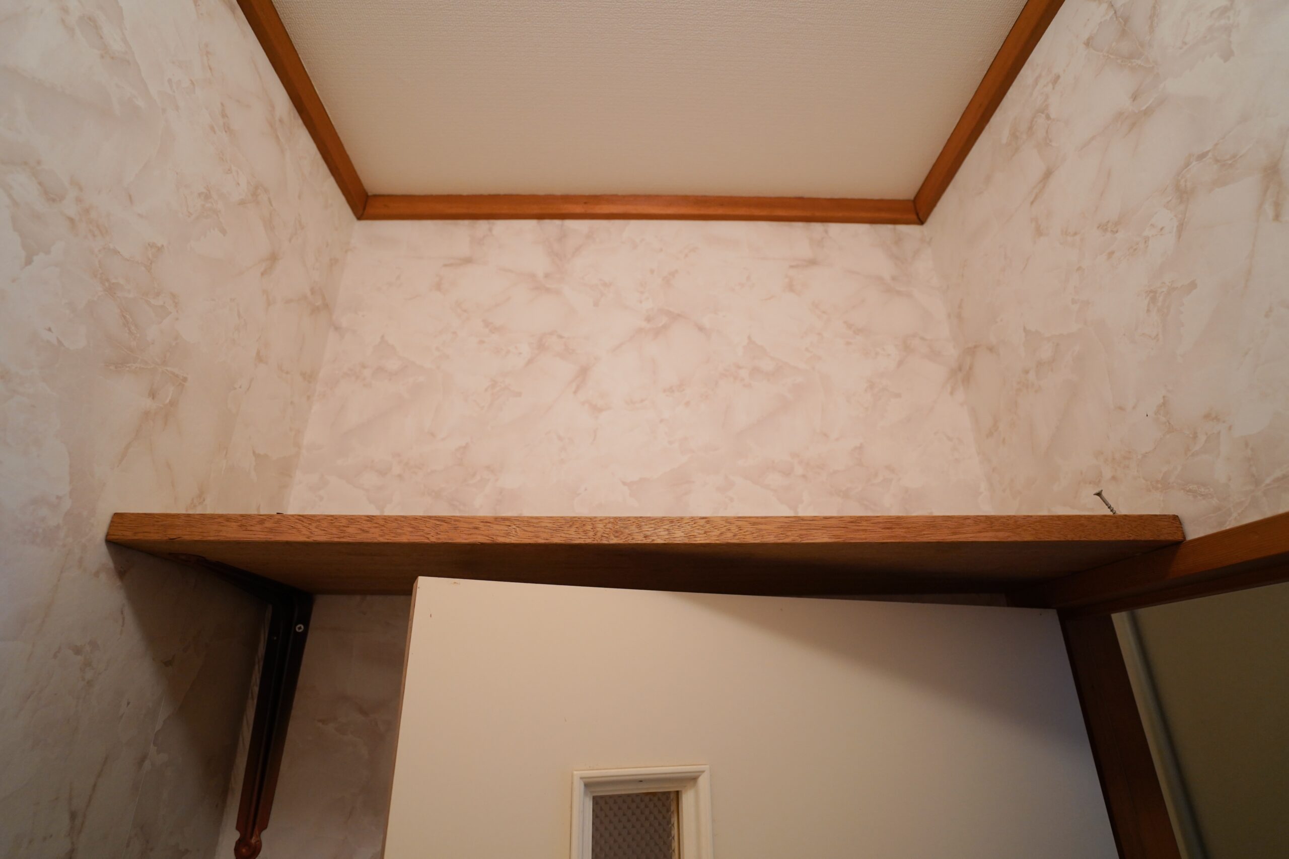 お手洗いの天井下には、備品を置ける棚が付いています。