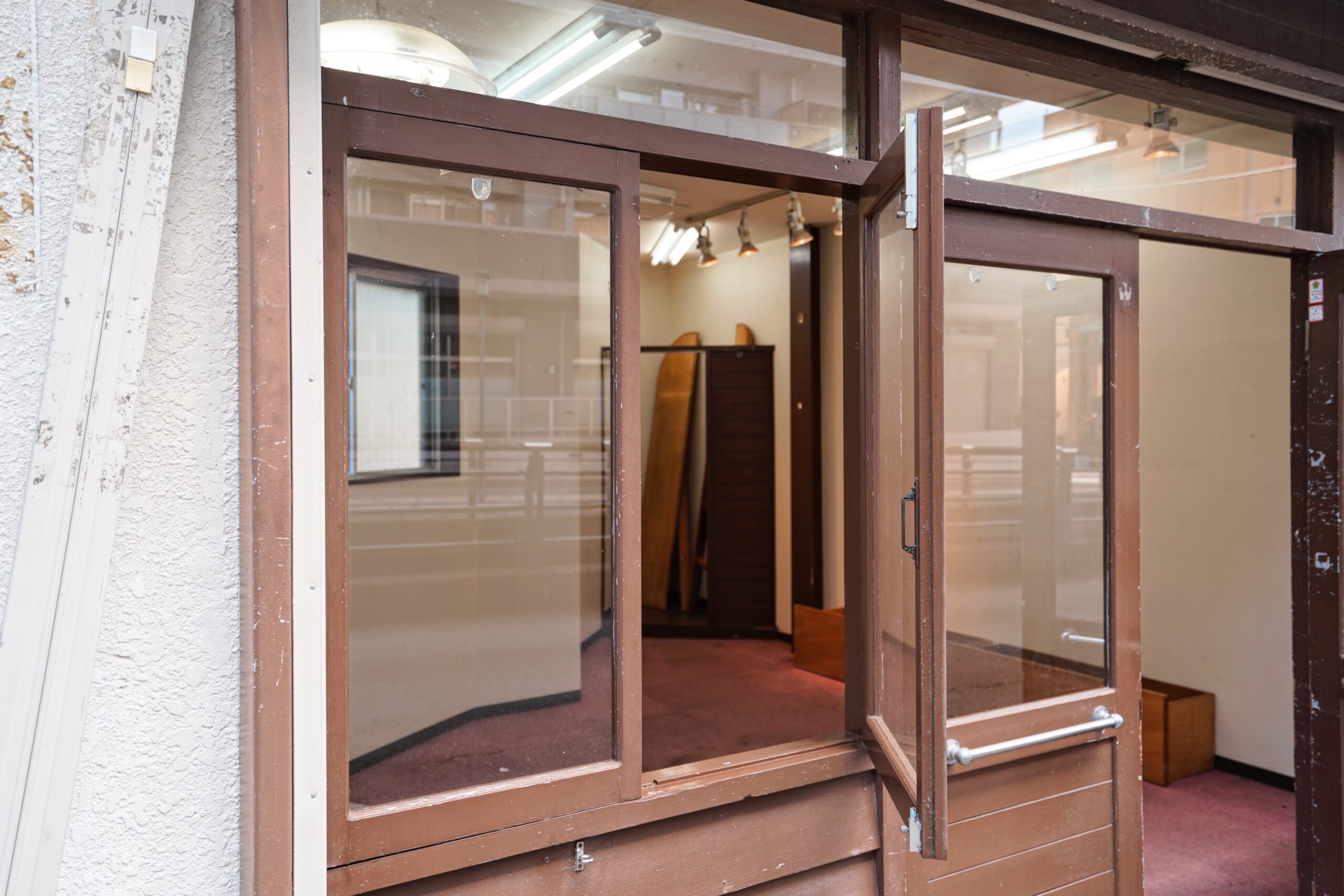 扉は観音開き、大きなガラス窓からは店内がよく見え、誰でもウェルカム、入りやすい印象のお店になるはず。