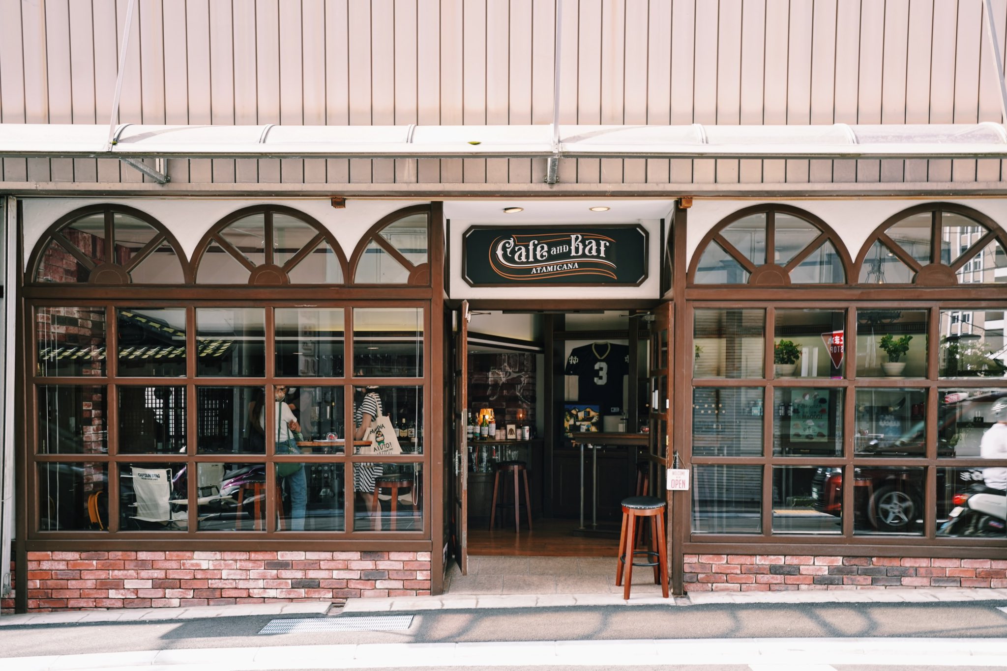 海外のパブのような雰囲気でお酒を楽しめる「Cafe and Bar Atamicana」など、明るい店構えの路面店が軒を連ねています。
