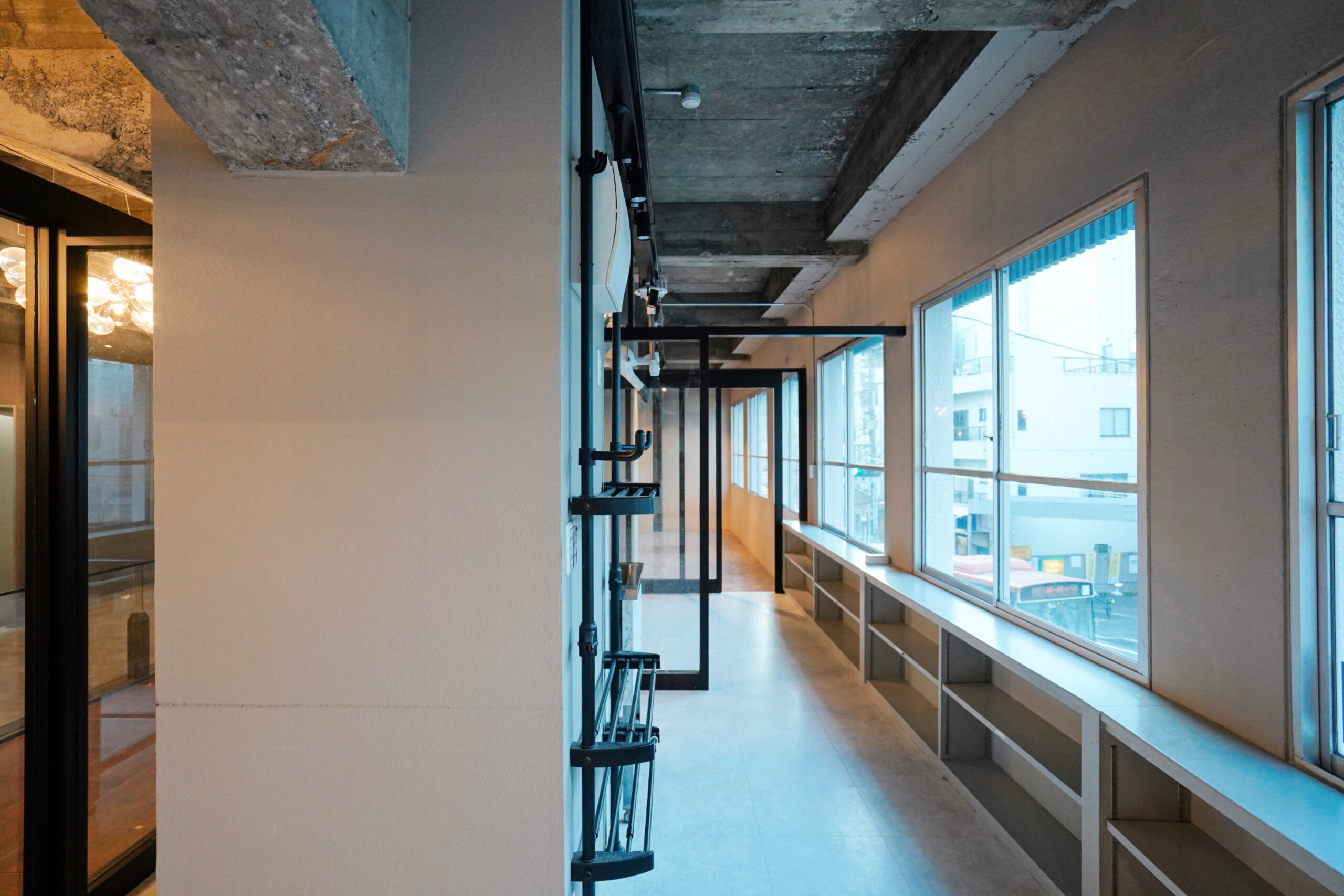 熱海駅に面した窓の下や、柱の裏に棚が設けられています。施設内の備品や利用者の私物を保管するのにちょうど良いですね。