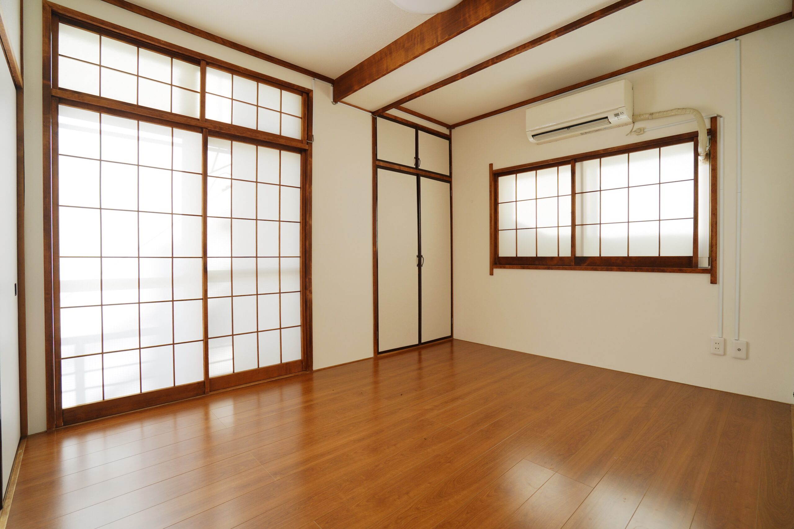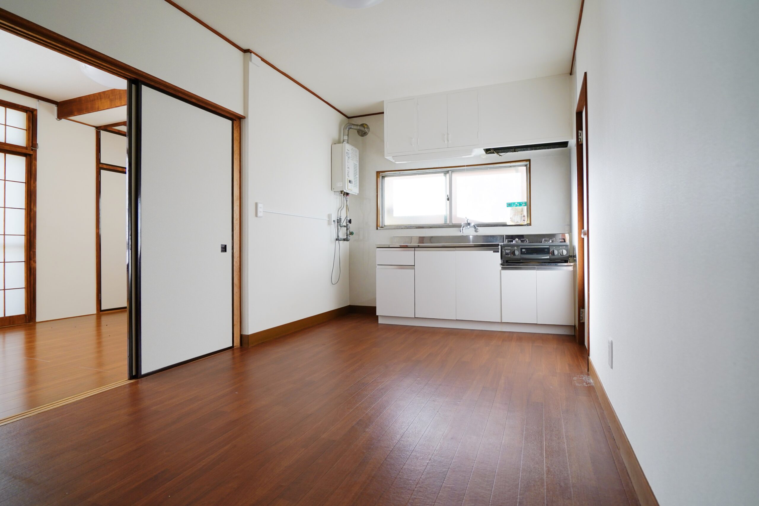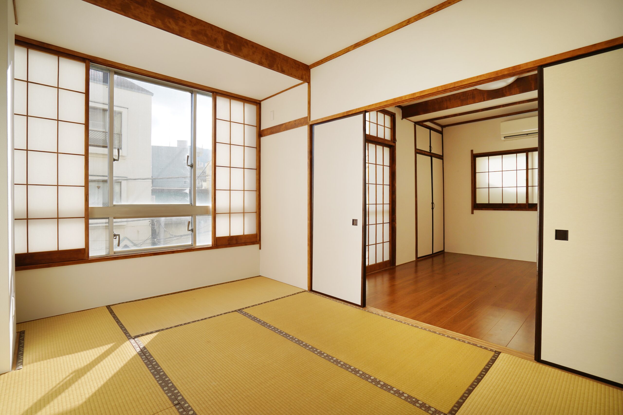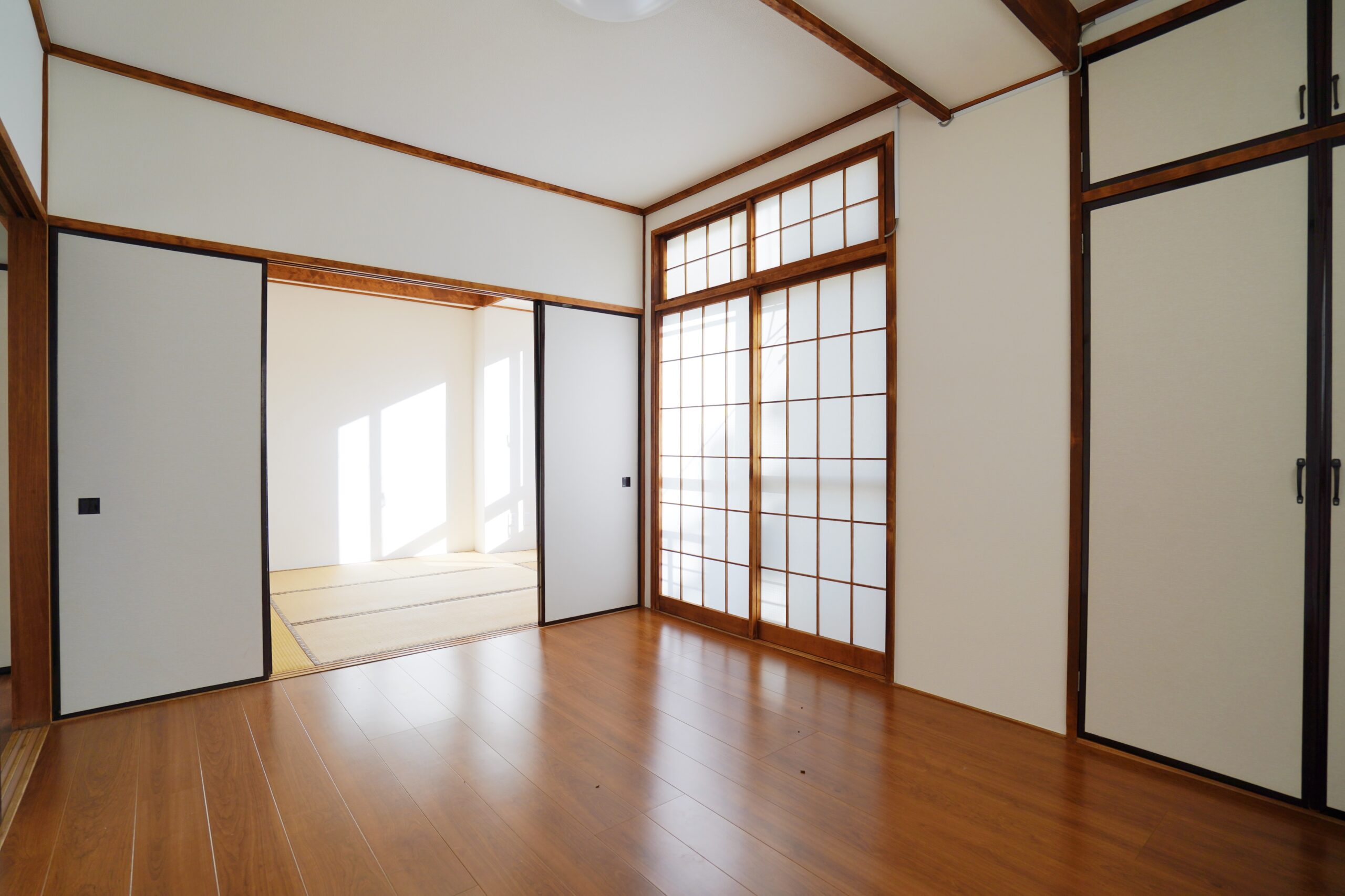 部屋の左側には6帖の和室、右側は6帖の洋室があります。