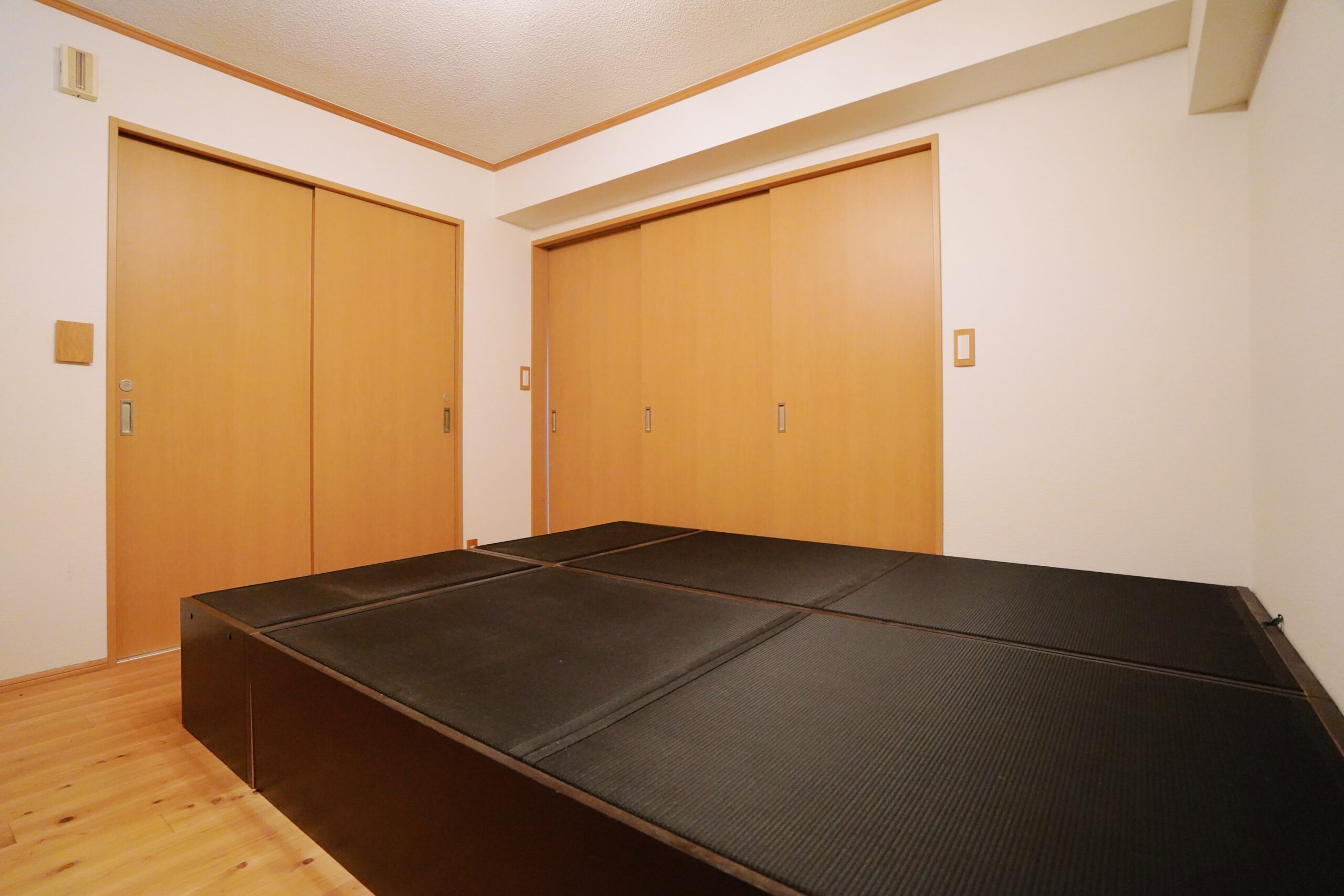 残置物:照明器具、居室内収納(メタルラックなど、不要な場合撤去可能)、畳ベッド兼収納