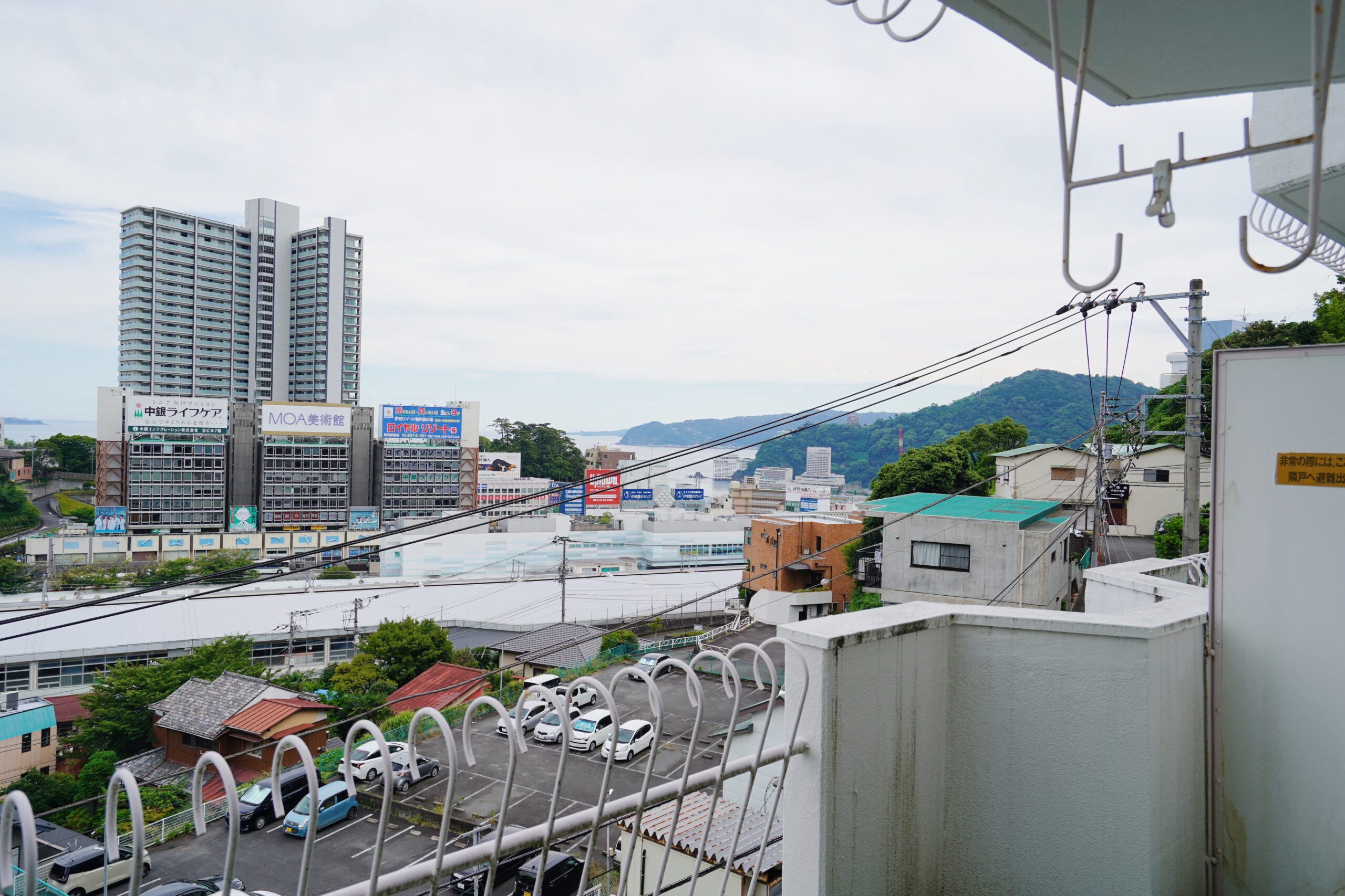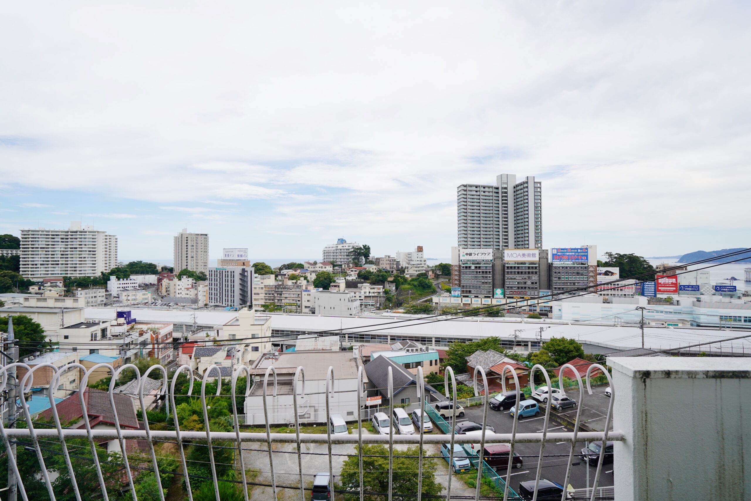 窓からは熱海の街、緑の山々とちらりと見える青い海。
