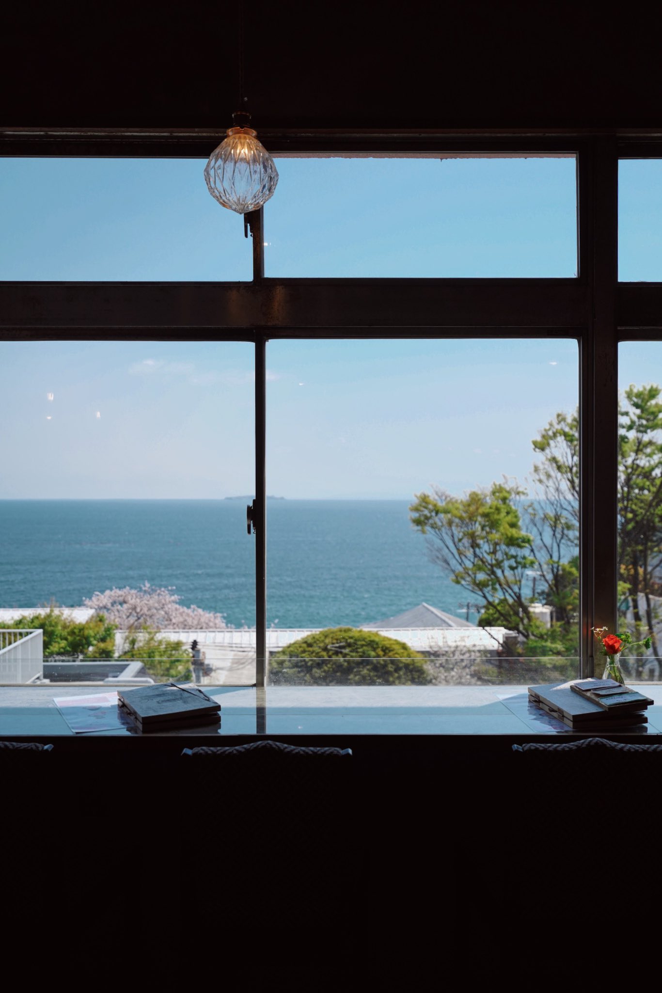 伊豆山神社の山道を降ったところは、海の見えるカフェ「あいぞめ珈琲店」は地元のおじいちゃんおばあちゃんから子供たちまで、みんなの憩いの場。