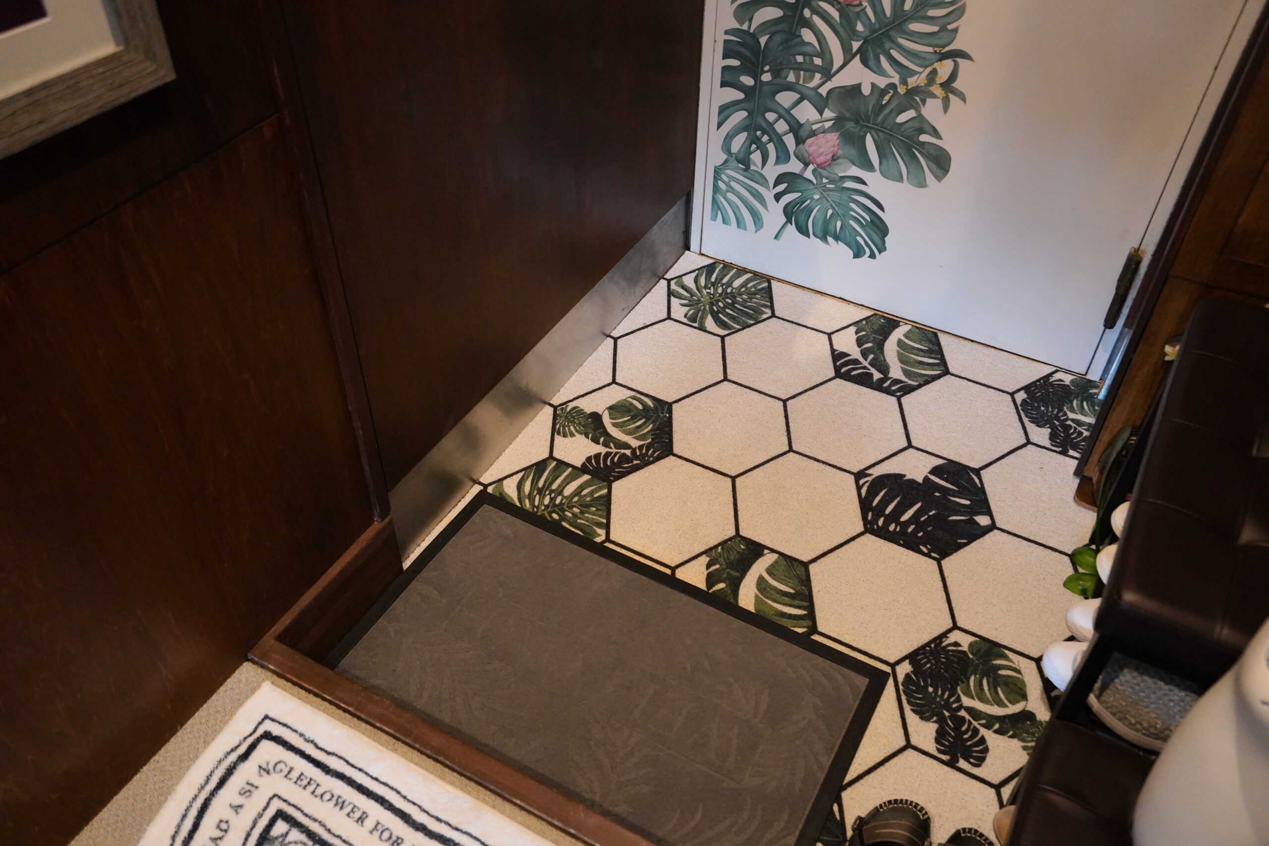 ボタニカルプリントで彩られた玄関から早速、南国の海風に出迎えられたような、爽やかな心地に。