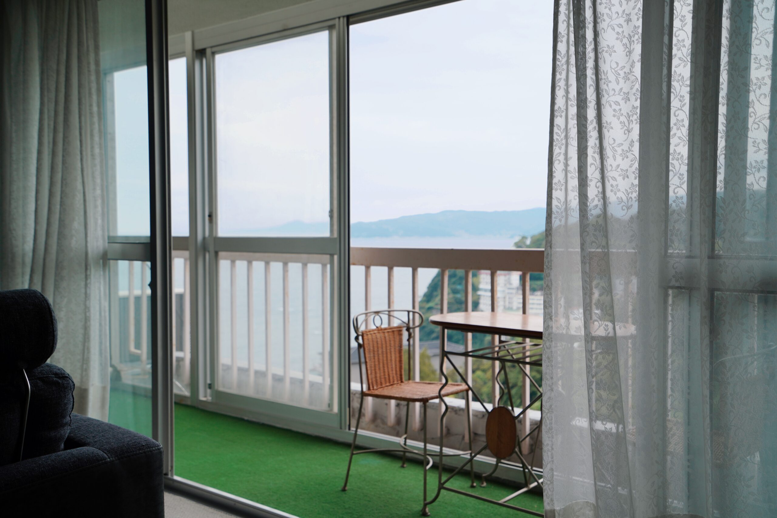 バルコニーにテーブルとイスを置いて、青い海を眺めながらのんびり、朝のコーヒータイムを過ごしたくなります。