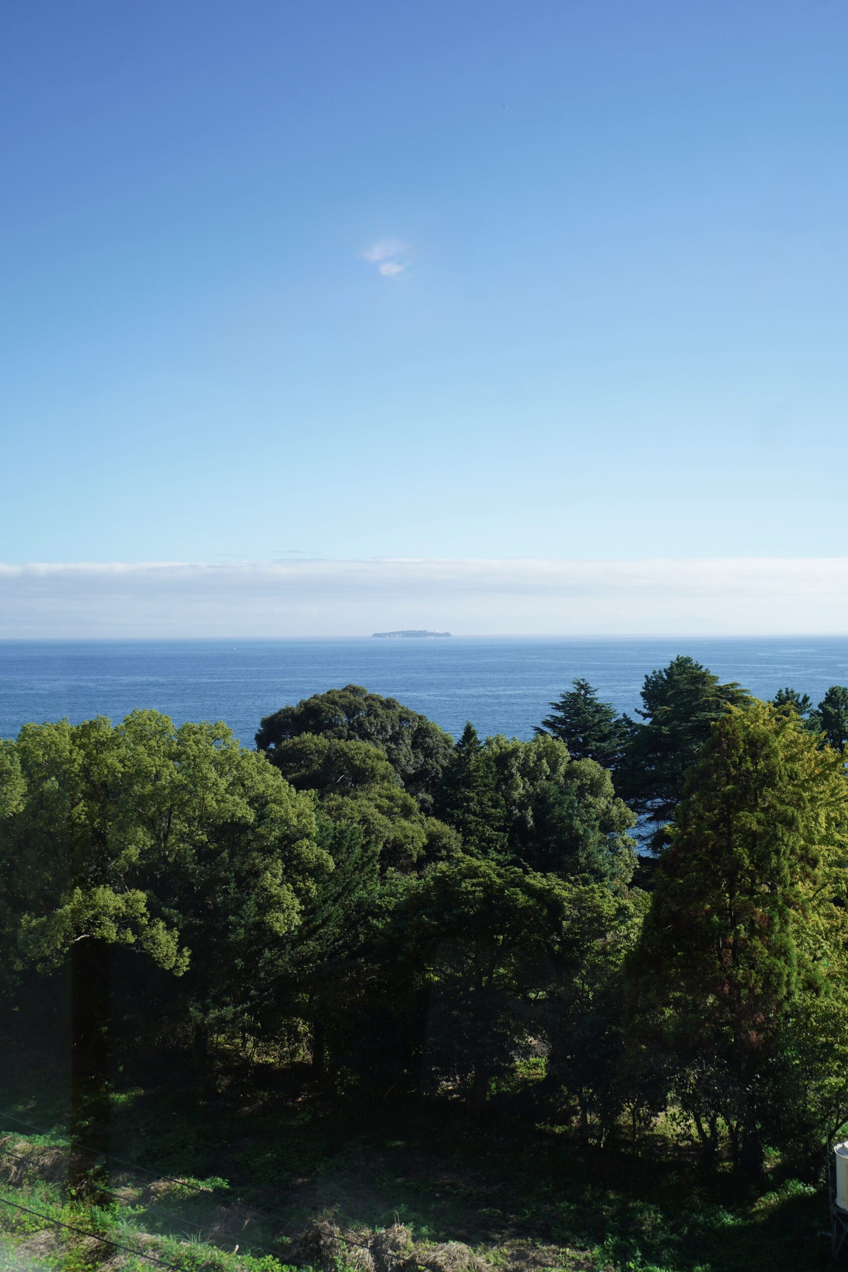 そして、窓の外に広がる青い水平線。初島、さらには伊豆大島まで望めます。