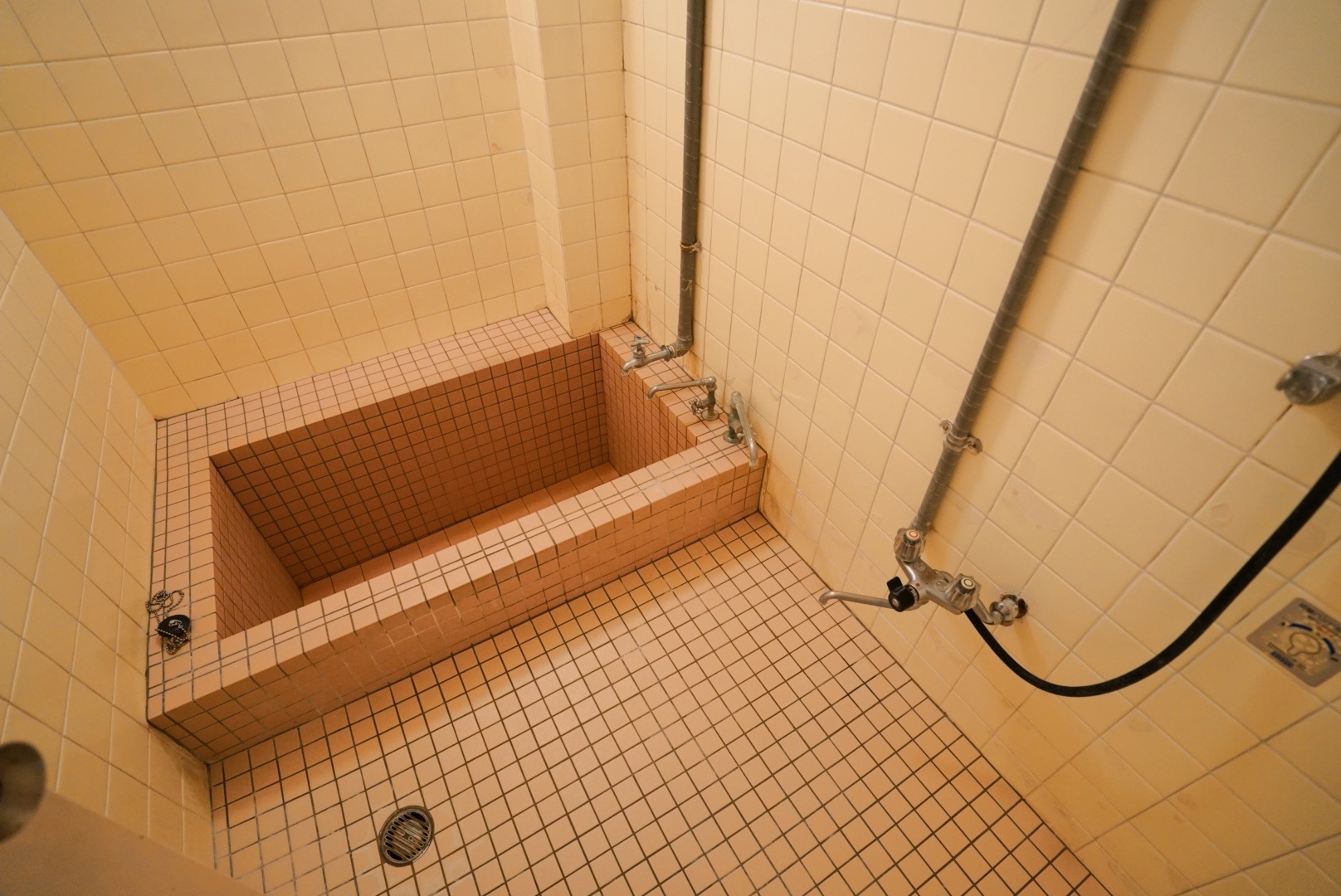 お手洗いは各階についています。床はかわいらしいレトロなタイル。