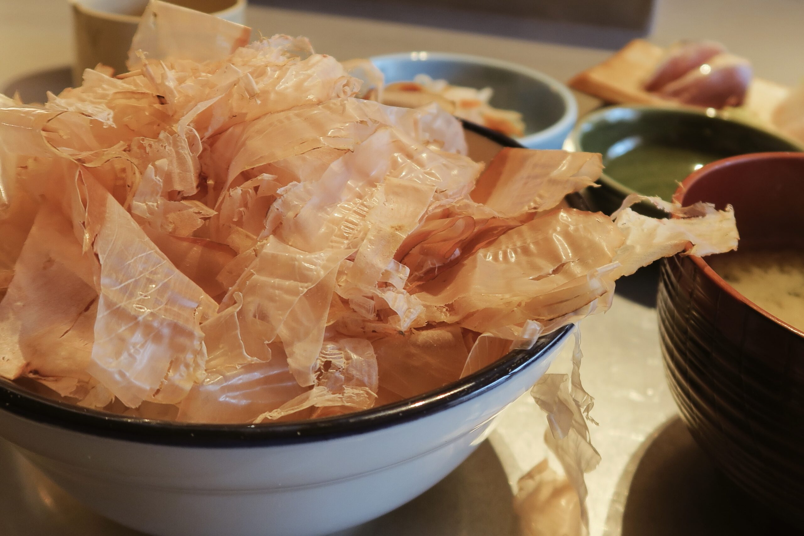 ふわふわの鰹節がてんこ盛りで登場します。