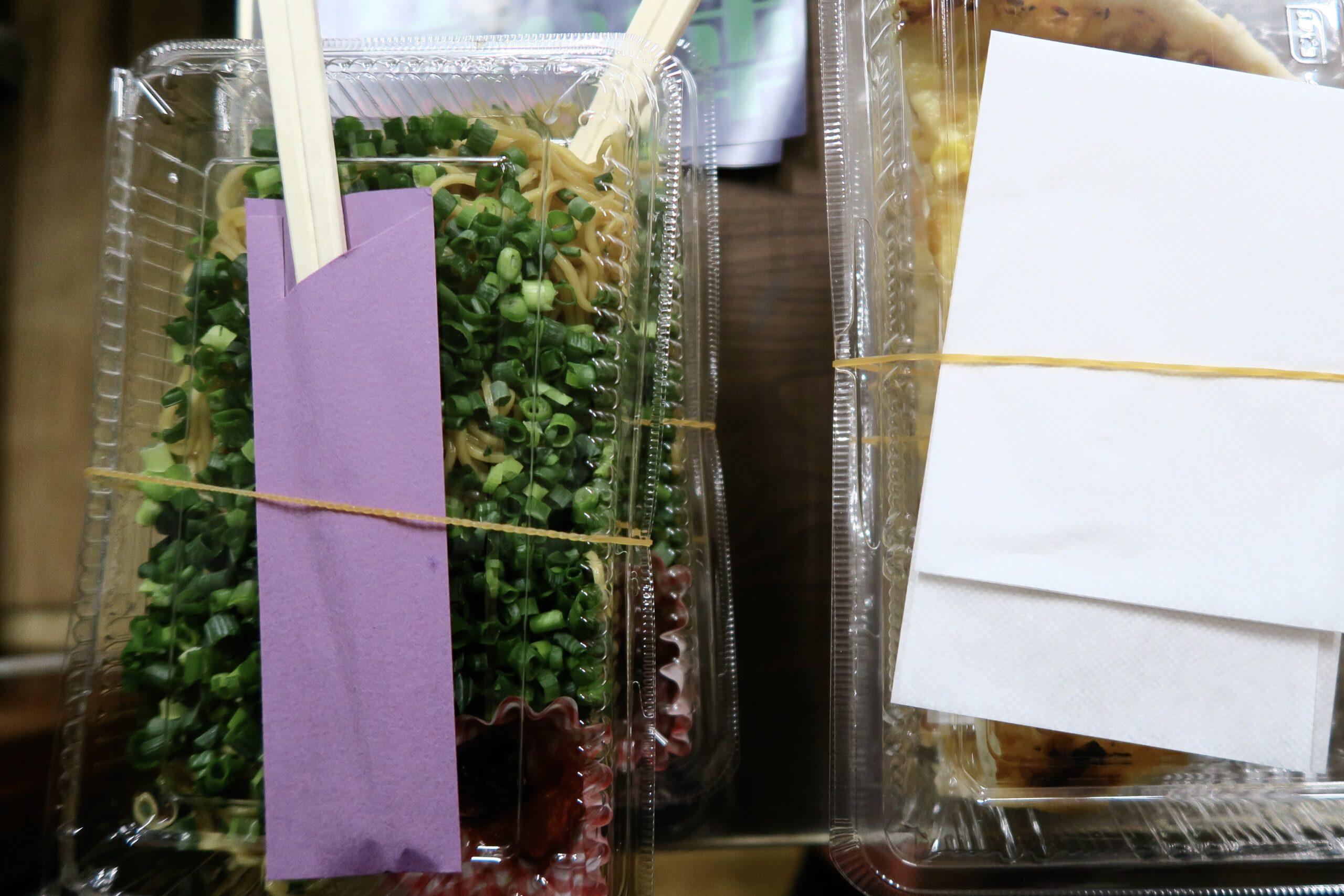 ▲フードメニューは「大一楼」の香港焼きそばと「伊太利an」のミックスピザ。いずれも中央町の老舗の逸品