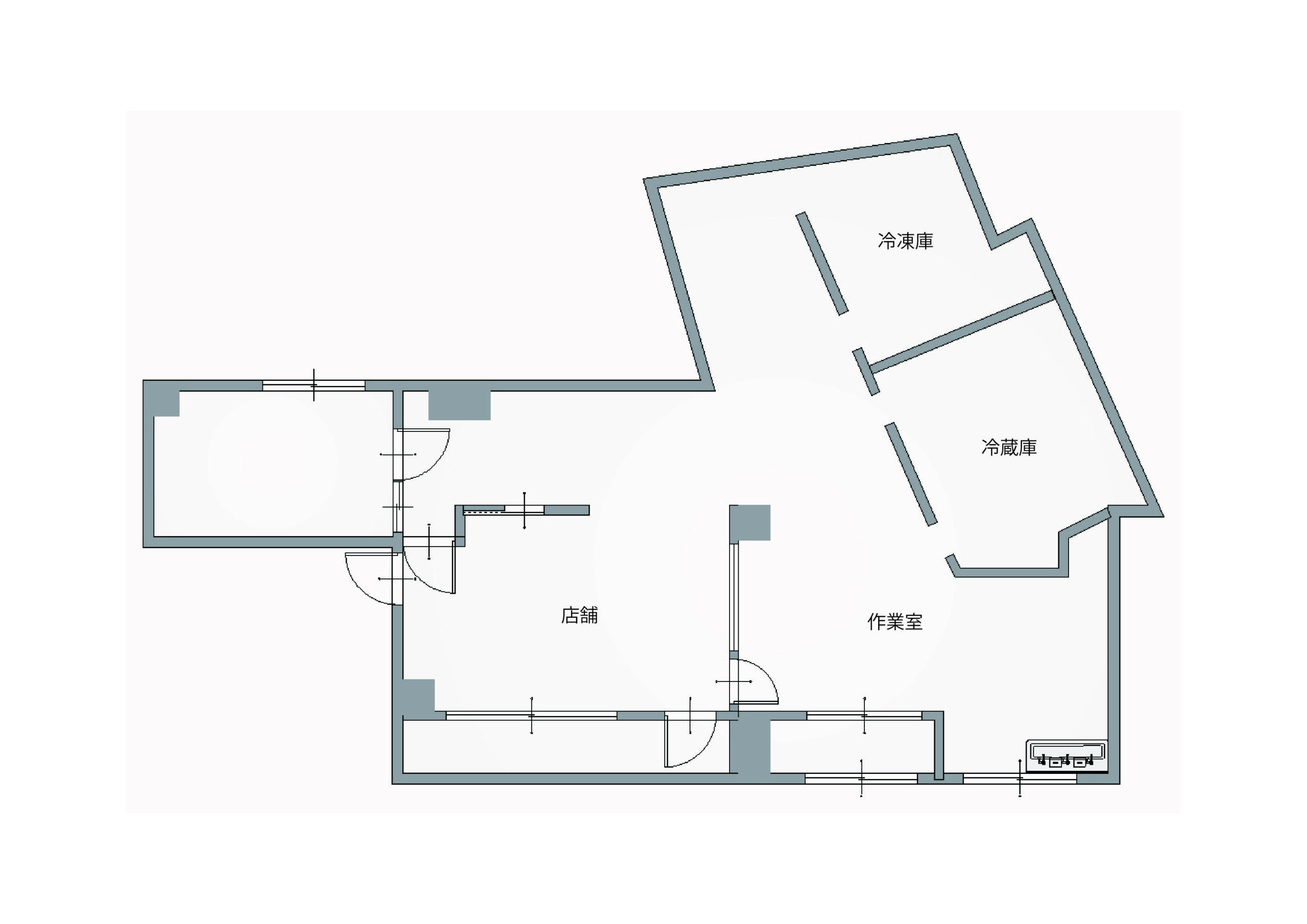 店舗スペースのほかに作業室、冷凍庫・冷蔵庫室と複数スペースに区切られているので、事務所兼店舗にしたり、ポップアップや展示をできる雑貨屋さんにしたりするのもおもしろそうだなと思いました。