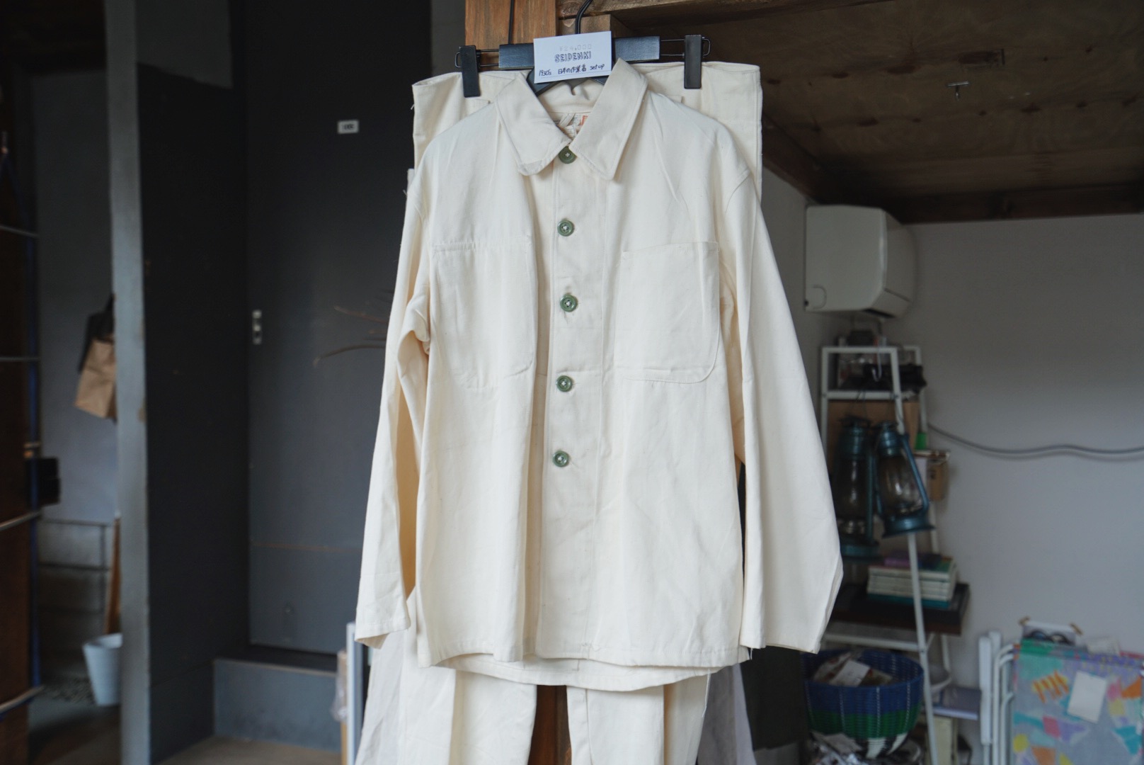 小島さん「ほかではあまり見たことのないもので、自分自身が着たいなと思う服を買い付けるようにしています。1930年代の日本の作業着や、日本酒の『白菊』のデザインが入ったシャツなど、国産の古着を中心に扱っています」