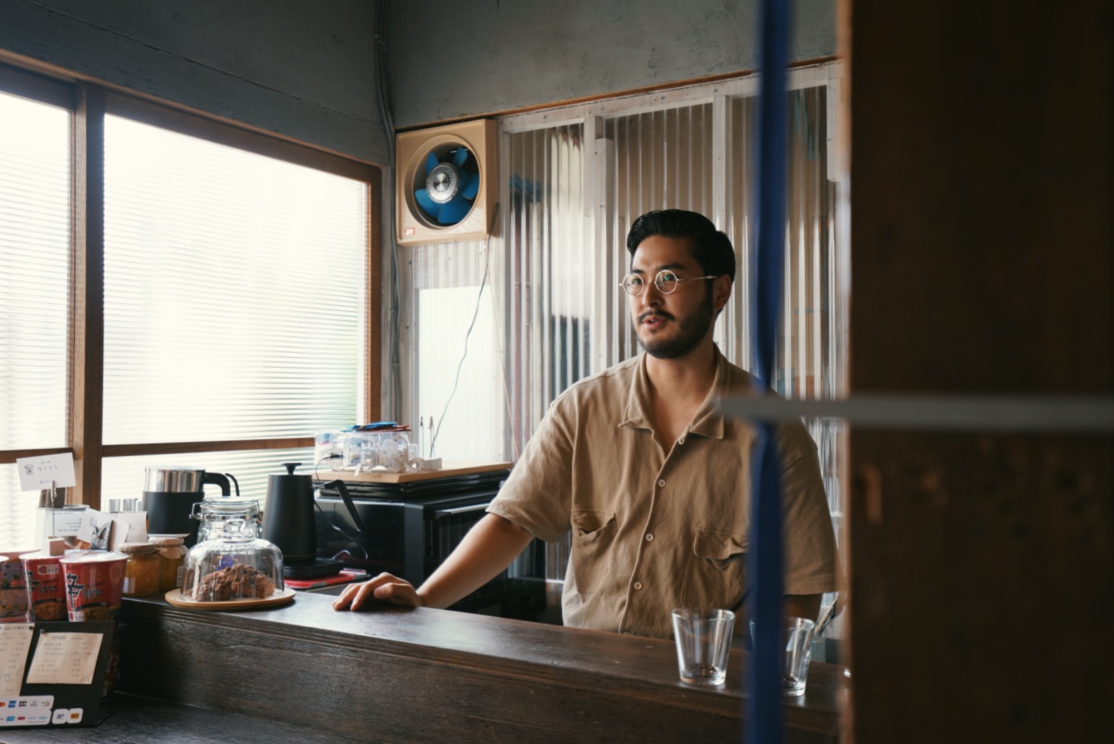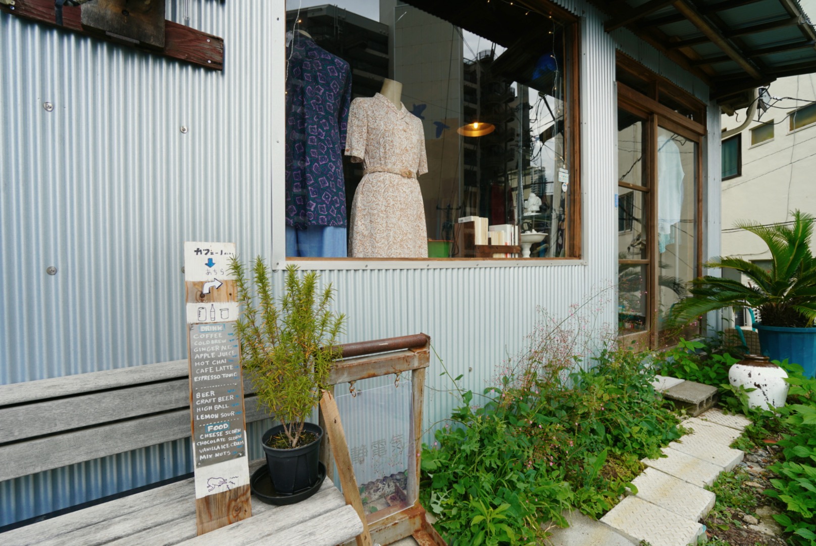 小島さん「当初は古着を並べているところを洗練された空間にする予定だったのですが、工事をしていくうちにだんだんコンセプトも変化していって、最終的には沖縄や台湾、東南アジアの屋台や建物を参考に、外壁をトタンにしたり、古い建具を使ったりしています。ふらっと入りやすく、長く滞在してもらえるよう、屋台のような雑多さと、洗練されたカフェの両方の要素を取り入れました」