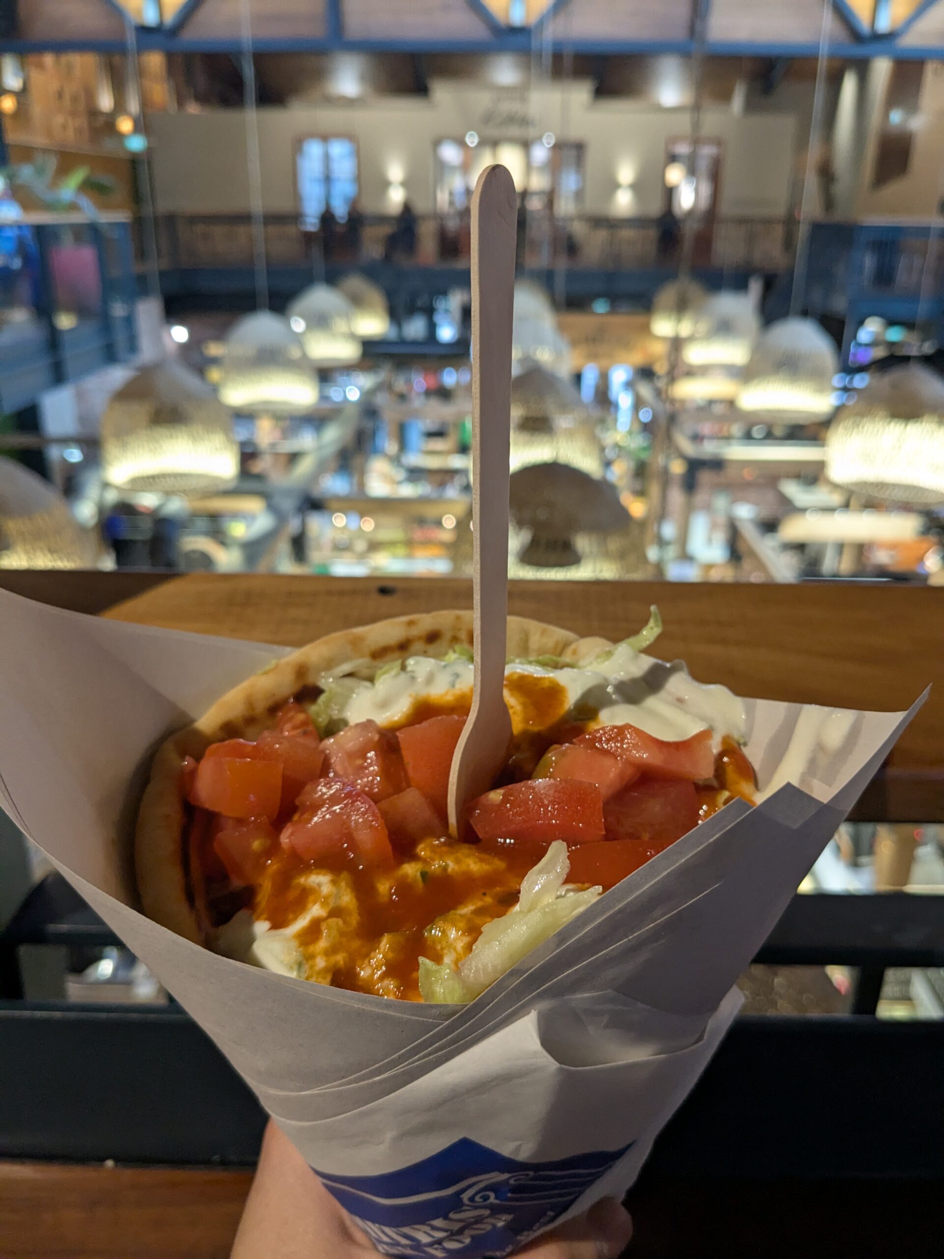 ▲個人的なお気に入りはギリシャのファストフード「スブラキ」。焼いた肉を野菜と一緒に薄いパンに挟んだもので、トルコのケバブにも似ているがヨーグルトソースでよりさっぱりとした味わい。日本でも流行って欲しい!